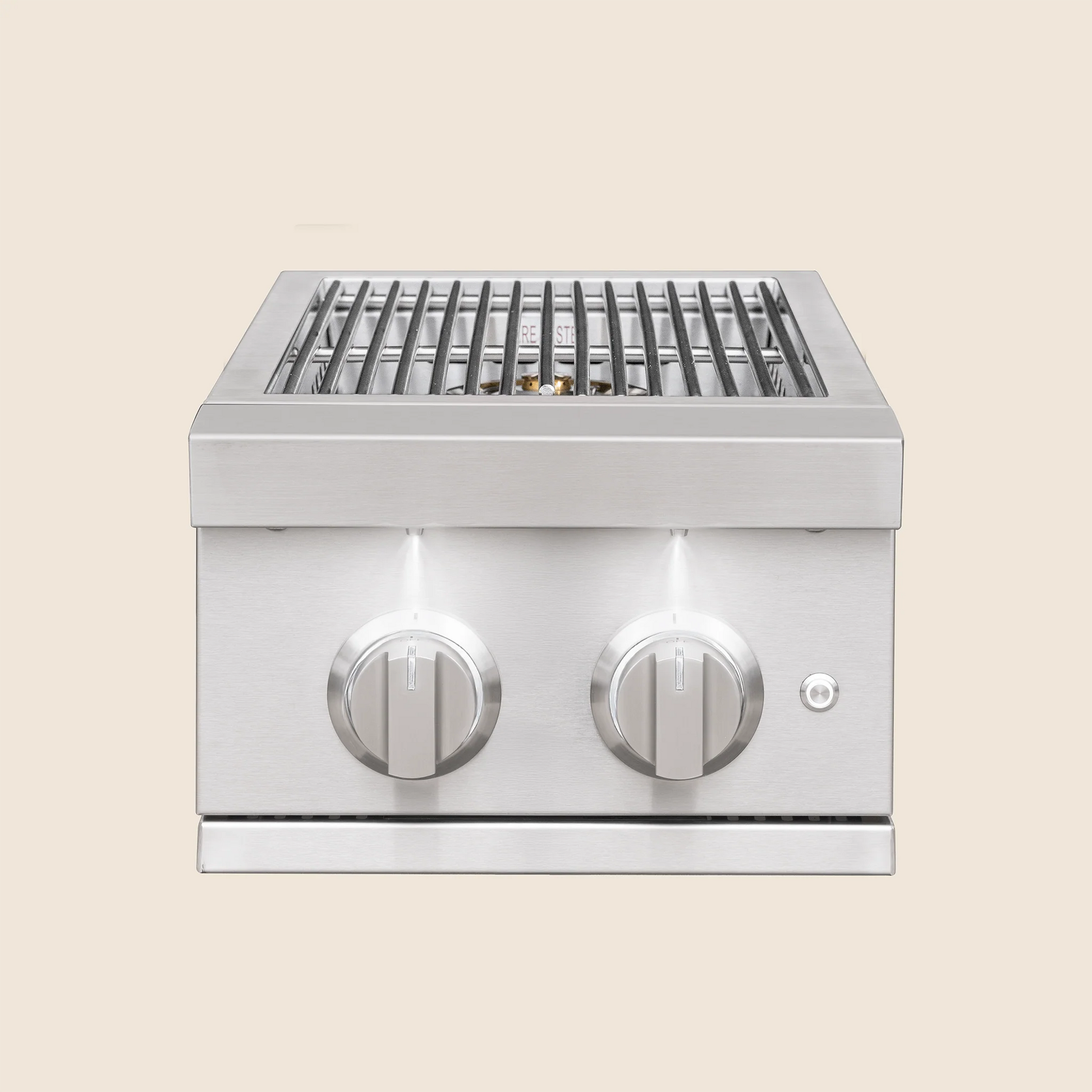 Pro Double Side Burner SB2PRO - Designed for serious outdoor chefs, the Summerset PRO Double Side Burner brings versatility and power to your cooking setup. With dual 24,000 BTU brass burners, it delivers precise control for everything from slow-simmered sauces to rapid boiling and high-heat searing. Crafted from durable #304 stainless steel, this side burner is built to withstand the elements while adding a touch of elegance to your outdoor kitchen. LED-illuminated control knobs ensure easy operation at night, and the included stainless steel lid keeps the burners protected when not in use. Perfect as a complement to your main grill, the PRO Double Side Burner expands your cooking potential with strength, style, and professional performance.
