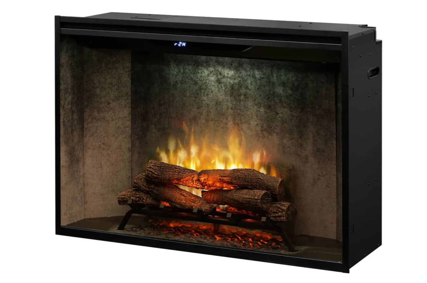 The Dimplex Revillusion series features the Revillusion® flame technology for larger, brighter flames with random patterns, a Mirage™ panel for reflection-free flames, and a ThruView™ design for a see-through flame effect. Customizable options include mood lighting, adjustable colors and brightness, flicker effects, 270-degree surround, life-size Realogs® Plus, and an ambient light sensor. With up to 8,800 BTUs, it can be direct-wired to 120, 208, or 240 volts for a seamless look. Most models install easily with a standard outlet, though professional setup is recommended for built-ins. This series comes in sizes 24", 30", 36", and 42", available in Weathered Concrete and Herringbone options.